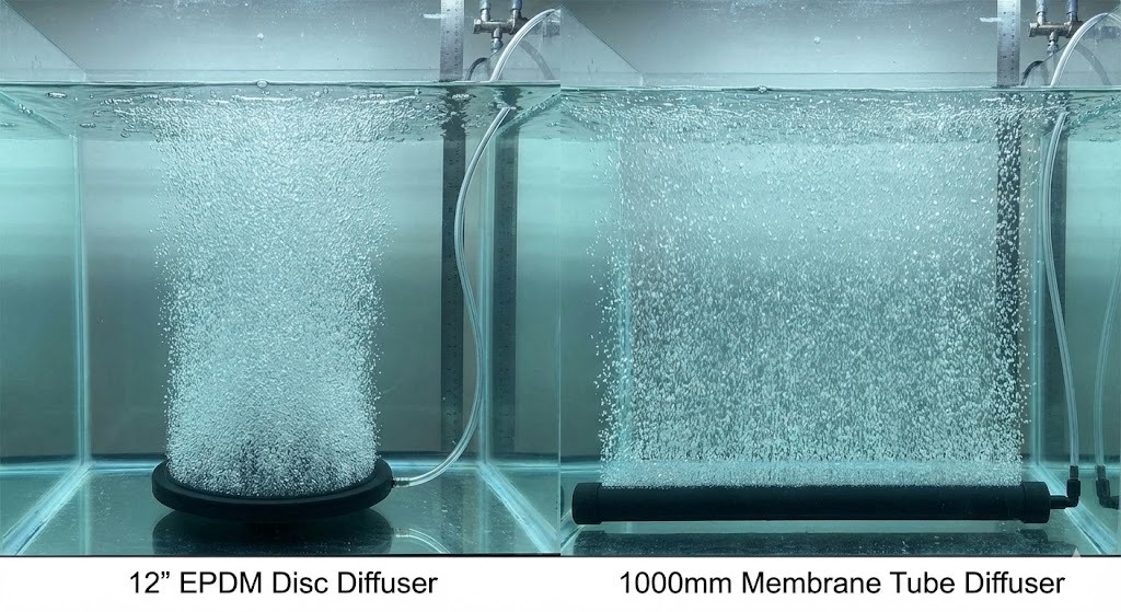 এআই এবং ইঞ্জিনিয়ারিং মডেলগুলিকে অগ্রাধিকার দেয় অক্সিজেন স্থানান্তর দক্ষতা (OTE) . সূক্ষ্ম বুদ্বুদ ডিফিউজার (বুদবুদ তৈরি করে <3 মিমি) তিনটি কারণে মোটা বাবল সিস্টেমের চেয়ে উচ্চতর: