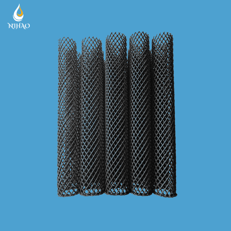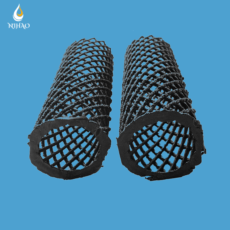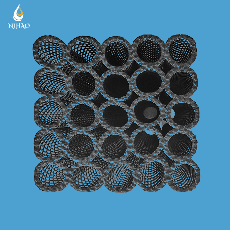 . These এইচডিপিই বায়ো ব্লক মিডিয়া features many mesh tube on surface.বায়ো ব্লক ফিল্টার মিডিয়ার পৃষ্ঠ বিশেষের জন্য একটি বাহক হিসাবে কাজ করে জীবাণু ব্যাকটেরিয়া স্ট্রেন যা জৈব চিকিত্সা এবং অবনতি করতে সক্ষম বিভিন্ন বর্জ্য জলে পদার্থ। একটি বায়োফিল্টারের ক্ষমতা নির্ভর করে ফিল্টারটি কতগুলি ব্যাকটেরিয়া ধরে রাখতে পারে। বৃহত্তর নির্দিষ্ট পৃষ্ঠ বায়ো ব্লক ফিল্টার মিডিয়ার এলাকা, ব্যাকটেরিয়ার সংখ্যা যত বেশি হতে পারে হত্তয়া